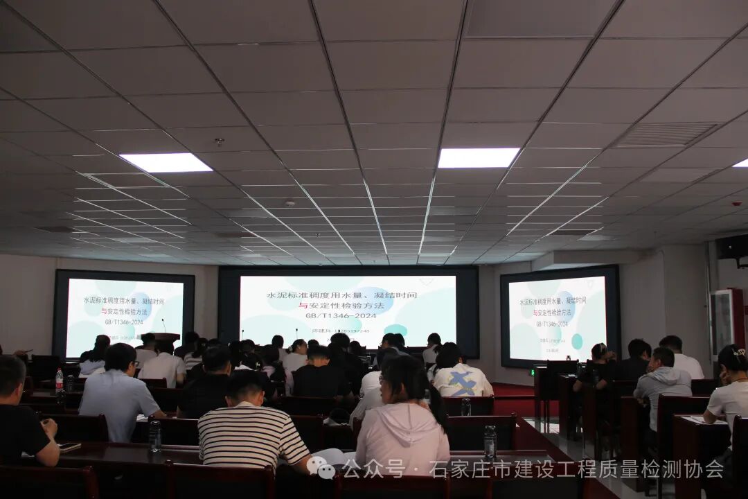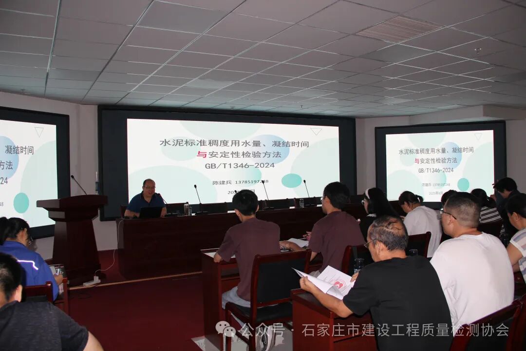 石家庄市建设工程质量检测协会聚焦行业技术前沿,2025年8月14日上午成功举办了《水泥标准稠度用水量、凝结时间与安定性检验方法》GB/T1346-2024新标准宣贯培训班。此次培训旨在推动我市建筑检测机构准确理解与执行最新行业标准,全面提升工程质量检测的规范化与科学化水平,为省会建设品质筑牢技术基石。